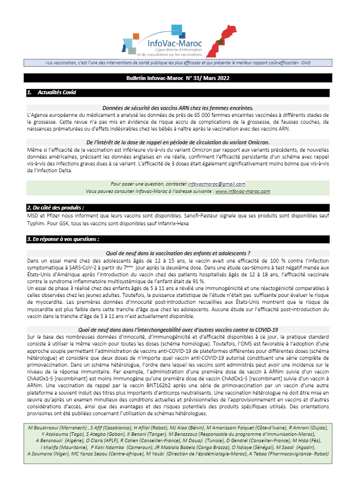 Infovac-Maroc, Bulletin – Mars 2022